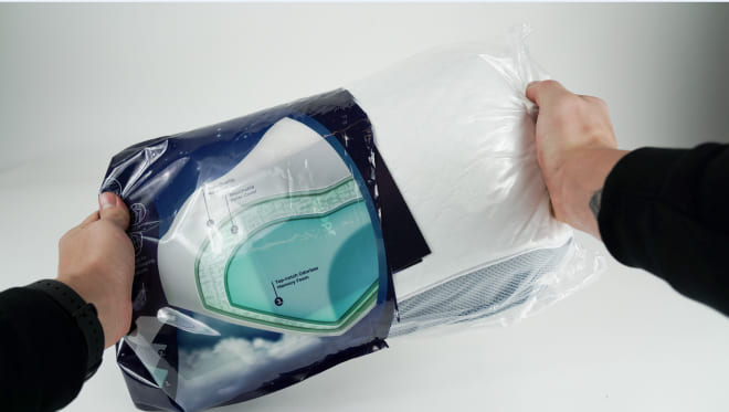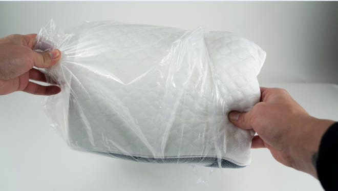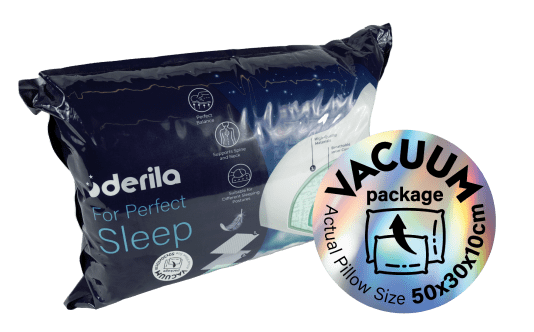 Ko vaš vzglavnik Derila prispe, boste videli, da je v vakuumsko pakirani vrečki. ekipa Derila je ta pristop izbrala iz okoljskih razlogov, da bi bil paket manjši. Ko vzglavnik vzamete iz embalaže, ga pustite 24 ur, da se mu povrne običajna oblika in velikost.